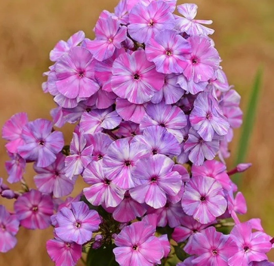 Метельчатый флокс Отем Джой представляет собой компактный куст 80 см в высоту и 50 см в диаметре. Прямостоячие побеги характеризуются умеренной силой роста. Крепкие стебли покрывают яйцевидно-удлиненные листья зеленого цвета, которые расположены поочередно. Кусты флокса достаточно устойчивы к неблагоприятным погодным условиям, при правильном уходе растения практически не поражаются болезнями и вредителями. Флокс Отем Джой хорошо переносит сильные морозы (от -34 С до -29 С), поэтому на зиму его укрывать не нужно, главное – обрезать всю наземную часть на высоту 10 см. Достоинства флокса Отем Джой: компактный куст; обильное цветение; крупные метельчатые соцветия; сильный аромат; оригинальный окрас лепестков; крупные цветки; цветки устойчивы к выгоранию; универсальное назначение; подходит для срезки; устойчивость к болезням и вредителям; выносливость к неблагоприятным погодным условиям; высокая морозостойкость. Флокс Отем Джой относится к среднецветущим сортам. Период цветения этого сорта длится с июля по август. Кусты Отем Джой отличаются пышным крупноцветковым цветением. Крупные метельчатые соцветия состоят из плотно расположенных эффектных цветков с оригинальным окрасом лепестков и сильным цветочным ароматом.