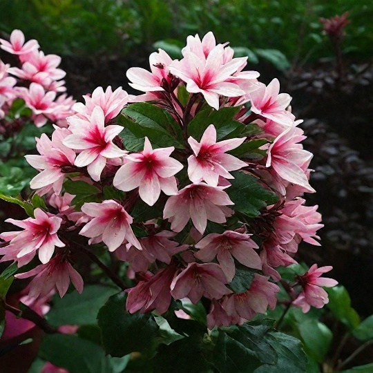 Флокс Пальмира (Palmyra) – это метельчатый сорт, который был выведен в 2023 году. Среднерослые растения достигают высоты от 60 до 80 см и имеют пирамидальное мелкоцветковое соцветие с диаметром цветков около 2,5 см. Цветки звездчатой формы окрашены в белый цвет с розовыми полосками, а также в розовый или красновато-розовый цвет