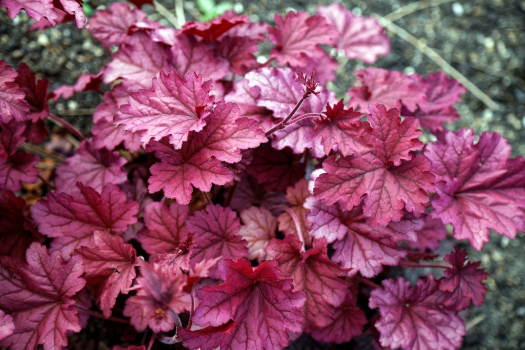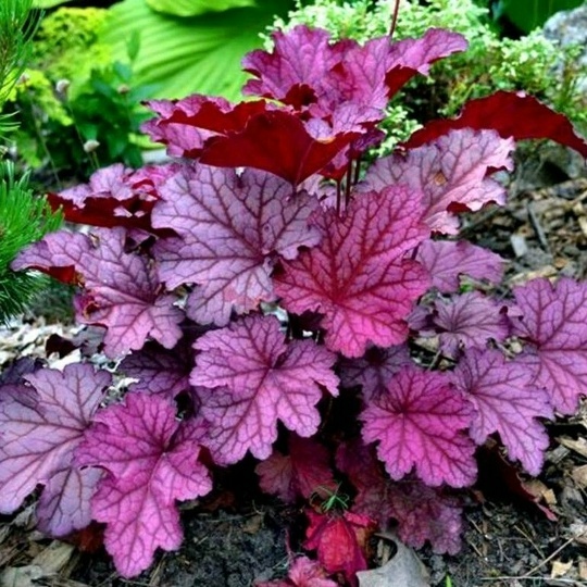 Этот сорт представляет собой травянистое растения, оно хорошо разрастается. Кусты хоть и крупные, но достаточно аккуратные, сгруппированные. Листья плотные, имеют округлую форму, каждый сезон разного цвета, но в общем имеют оттенки розового свекольного и фиолетового. В весенний период листья имеют яркий розовый окрас, к лету они становятся все темнее. Осенью они приобретают розово-коричневый цвет. А также листья имеют заметные фактурные прожилки. Размер куста обычно составляет около 30 сантиметров в высоту и 40 сантиметров в ширину.