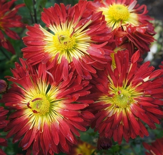 Хризантема начинает цвести рано и продолжает радовать глаз в течение долгого времени. Период ее цветения приходится на август-сентябрь. Хризантема Алые паруса – это многолетний сорт вида корейская, который используется для оформления смешанных бордюров и высаживается в напольные вазы для украшения мест отдыха. Куст компактный, высота достигает до 60 см. Размер цветка является средним, а диаметр может достигать 8 см. Соцветие классифицируется как лучевидное, а лепестки свернуты в трубочку и имеют форму ложки. Цветок окрашен в ярко-алый цвет, а внутренние лепестки будто покрыты кисточкой ярко-желтыми мазками. Середина цветка желтая.