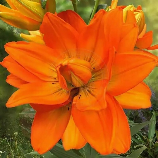 Лилия Халк притягивает взгляд оранжевыми махровыми цветами, напоминающими раскаленные угли. Бутоны диаметром до 20 см.