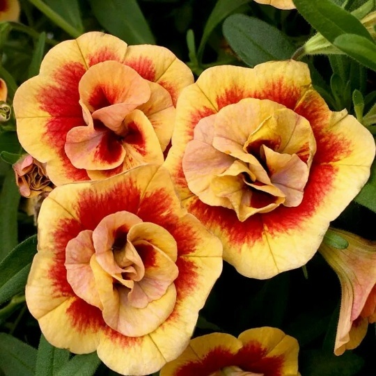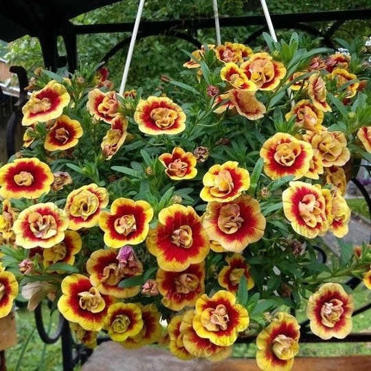 Калибрахоа Мини Феймос Нео Дабл Оранж Тастик, также известный как Neo Double Orange Tastic, представляет собой удивительное растение с шарообразной формой куста. Высота этого сорта колеблется от 15 до 25 см, а диаметр достигает 30-40 см. Куст имеет плотную и однородную структуру, что делает его особенно привлекательным для садоводов и ландшафтных дизайнеров. Характер роста побегов полуампельный, что позволяет растению красиво свисать из горшков или кашпо. Ветвистость у калибрахоа обильная, а длина плетей может достигать 50-60 см. Это создает эффект пышного цветения и позволяет растению занимать значительное пространство в композиции. Цветы имеют средний размер — от 3 до 5 см в диаметре — и обладают махровой текстурой, что придаёт им особую элегантность. Основной цвет цветов оранжевый, а их форма напоминает розочки. Одной из главных особенностей калибрахоа Мини Феймос Нео Дабл Оранж Тастик является непрерывное цветение на протяжении всего сезона. Это делает растение идеальным выбором для тех, кто хочет наслаждаться яркими красками в своём саду или на балконе без перерывов. Цветы не теряют своей красоты даже после дождя благодаря высокой устойчивости к неблагоприятным погодным условиям. Махровые оранжевые цветы выглядят особенно эффектно на фоне зелёных листьев растения и могут использоваться как монорастение или в комбинации с другими растениями в ландшафтном дизайне. Их насыщенный цвет привлекает внимание и создаёт атмосферу тепла и уюта.
