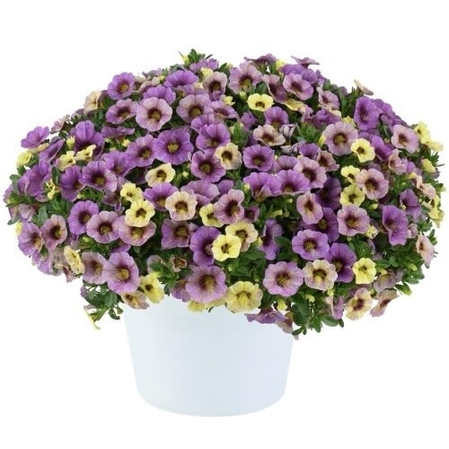 Калибрахоа Омбре Парпл (Ombre Purple) представляет собой среднерослый декоративный цветок, который идеально подходит для создания ярких акцентов в ландшафтном дизайне. Этот сорт относится к серии Омбре (Ombre) и отличается шаровидной формой куста, а также плотной и компактной структурой. Высота растения составляет 35-40 см, а диаметр — 20-30 см. Кусты с полу-ампельными побегами и обильной ветвистостью. Листья калибрахоа зеленые, что создает контраст с яркими цветами во время цветения. Сила роста у этого сорта средняя. Калибрахоа радует глаз своим обильным и продолжительным цветением с июня по сентябрь. Период цветения охватывает четыре месяца. Цветы крупные и обладают уникальной окраской — по мере роста оттенки меняются с бледных на насыщенные яркие, образуя букет разнообразных окрасок. Структура цветов простая, но это не умаляет их привлекательности. Обилие цветов на кустах делает их идеальными для использования в подвесных кашпо и корзинах. Благодаря своей красоте и продолжительности цветения калибрахоа становится популярным выбором среди флористов и ландшафтных дизайнеров.
