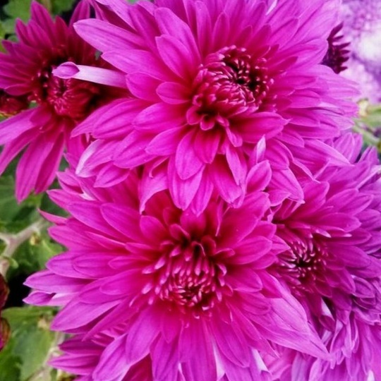 Хризантема корейская «Космична»(«Космическая») — низкорослый многолетник, образует кустик шаровидной формы. В период массового цветения сплошь усыпан довольно крупными, махровыми, колоритными цветками темно-малинового цвета, диаметром до 7 см. Лепестки слегка заостренные. Высота растения всего 45 см. При правильной посадке и уходе зацветать начинает с августа. Предпочитает солнечное месторасположение, плодородные почвы, без застоя воды.