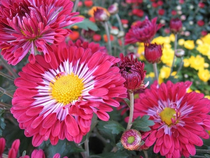 Название сорта отражает его необычную особенность: цветки напоминают узоры традиционной вышивки. Хризантема имеет яркую окраску и может иметь разные оттенки красного, иногда с эффектными градиентами, плавно переходящими от более тёмной основы к более светлым кончикам. Середина цветка может быть жёлтой или зеленоватой. Период цветения у этого сорта начинается в августе и продолжается до конца октября или до первых заморозков. Хризантема Вышиванка – это корейский среднерослый сорт, который выделяется своим необычным внешним видом. Цветок напоминает вышитую картину, где лепестки вуально собраны вокруг центра. Сорт среднецветковый, диаметр составляет 6-7 см.