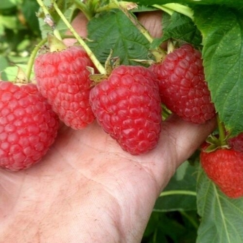 Маравилла относится к ремонтантному сорту. Собирают плоды 2 раза за сезон. Первое созревание ягод на прошлогодних побегах начинается в мае. Сбор урожая заканчивают уже к середине лета. Он составляет 60-70% от общего количества. Сроки созревания для второго урожая поздние. Побеги первого года начинают плодоносить к концу сентября и до самых морозов. Урожай этого периода составляет 30-35%. Плоды растения очень крупные, правильной конической формы, ярко-красного цвета. Длина ягоды может достигать 3,5 см, диаметр 2,5-3 см, вес 10-14 г. Кисло-сладкие плоды обладают ярко выраженным малиновым ароматом. Консистенция мякоти плотная.