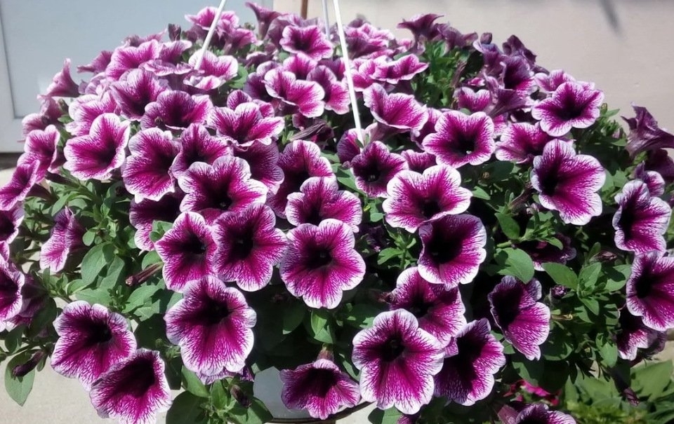 Цветки крупные, яркие,пестрые, сиренево-фиолетовые с темным пятном в центре и темными прожилками. Куст плотный, полуампельный, высотой около 35 см и шириной около 45 см, обильно покрыт цветами. Зацветает рано и цветет продолжительное время. Подходит для выращивания в кашпо, вазонах, балконных ящиках и горшках, также в открытом грунте.