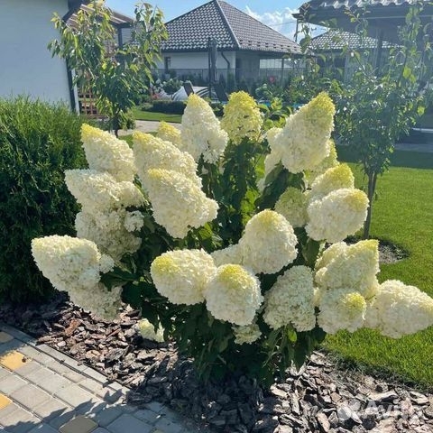 Гортензия «Полярный медведь» представляет собой довольно крупный и раскидистый кустарник, который достигает в высоту двух метров, а в диаметре – полутора. Соцветия массивные, конусовидные, в длину примерно 40 сантиметров. Густо покрывают побеги, благодаря чему растение выглядит воздушным и невесомым. В соцветиях есть два вида цветков: плодные и стерильные. Плодные в скором времени отцветают и опадают. Бесплодные намного больше, изначально их цвет будет фисташковым, а уже по осени лепестки белеют, а потом становятся розовыми. Цветёт «Полярный медведь» с самого начала июня и до конца осени.