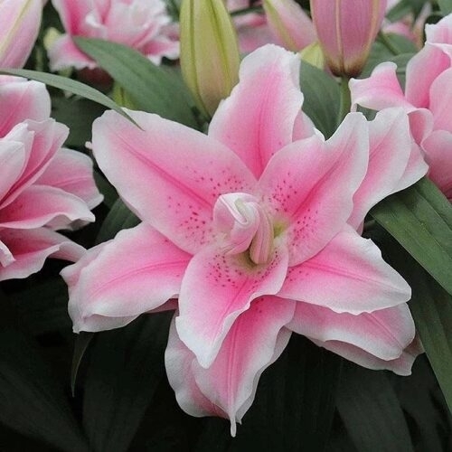 Лилия Микаэла, также известная как Roselily Mikaela, является одним из самых популярных восточных гибридов. Это крупноцветковый сорт, который отличается своей необычной окраской и двухцветностью. Цветок имеет диаметр 18-20 см и ярко-розовую окраску со снежной окантовкой. Вишневый крап сочетается с лучами, идущими от центра к краю. Крупные цветы этого сорта выглядят очень эффектно на фоне зеленых листьев. Благодаря своей двухцветности и крапу этот сорт станет настоящим украшением любого участка.