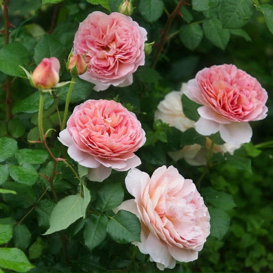 Сорт относится к группе английских роз, в России официально не зарегистрирован. Кусты сильнорослые, высотой 120-150 см и до 140 см в диаметре. Их форма округлая, густота высокая. Листья среднего размера, темно-зеленые, блестящие. Многолетний куст пригоден для штамбового выращивания. Цветки у роз этого сорта розовые, с нежной абрикосовой ноткой и желтым основанием лепестков. Пестрота в окраске отсутствует. Соцветия малоцветковые, на стебель приходится по 1-3 бутона. Сами венчики квадратные, крупные, диаметром 9-11 см, густомахровые. Количество лепестков в каждом доходит до 140. У роз Абрахам Дерби присутствует сильный аромат. Его определяют как фруктовый, с масляными нотами.