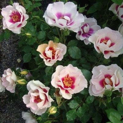 Среди преимуществ розы можно отметить ее красивую окраску цветков. Они имеют кремовые оттенки слоновой кости и украшены ярко-фиолетовым или клюквенно-красным пятном в центре. Цветение этого сорта происходит повторно волнами на протяжении всего сезона. Роза Булс Айс отличается своей способностью к повторному цветению. Цветки могут быть как одиночными, так и располагаться в соцветиях. Они имеют диаметр около 7-9 сантиметров и являются двухцветными – кремовые с фиолетовым или клюквенно-красным пятном в центре. Насыщенность цвета этих роз яркая.