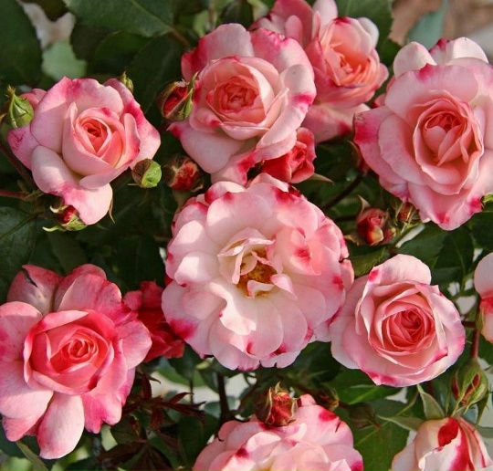 Розы-шрабы – это одна из популярных групп, которую любят выращивать на клумбах, в парках и цветниках. Особым спросом пользуются разновидности с экзотическим или необычным окрасом. Именно к таким относится немецкий сорт Розенштадт Фрайзинг, вырастить который может даже новичок. Нежный красно-белый цветок представляет собой высокорослое растение с прямостоячими крепкими не поникающими побегами, вырастающими до 100-120 см. Характеризуется розовый кустарник развитой ветвистостью, незначительным количеством мелких шипов на побегах, а также густой кроной, состоящей из некрупных темно-изумрудных листьев с выраженным глянцем. Разрастается куст достаточно быстро, поэтому приобретает пышную форму – около 80 см в диаметре. Весной на каждом удлиненном цветоносе формируются пышные бутоны, посаженные и одиночно, и в соцветиях. В среднем на каждом стебле образуется рыхлое соцветие-кисть, состоящее из 3-х цветков.