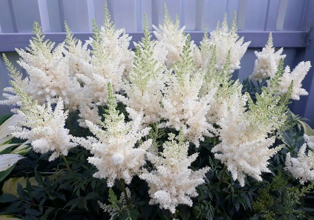 Длина цветоноса составляет 25 см, в диаметре он – около 12 см. Всю первую неделю цветения цветки астильбы имеют белоснежный оттенок. Затем они постепенно начинают приобретать желтоватый окраса. Они все являются многолетними растениями высотой до 100 м