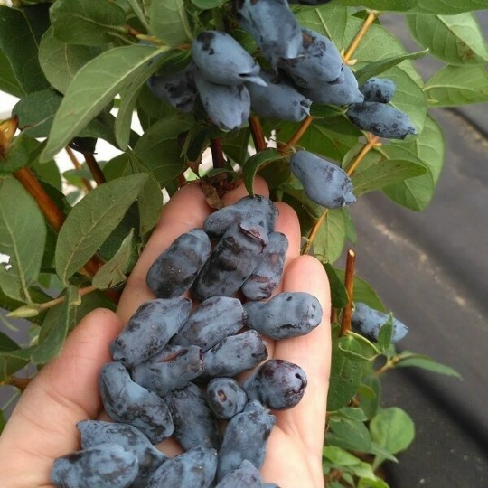 Бореал Близзард (Boreal Blizzard) переводится как «северная метель/буран». Такое говорящее название носит отличный канадский сорт жимолости с огромными съедобными плодами, имеющими уникальный десертный вкус. Жимолость канадского сорта формирует полутораметровые кусты, являющиеся средними по высоте. Ягоды Бореал Близзард просто гигантские, в длину они достигают 3,5 см, по ширине – 1 см. Что касается массы ягод, то для жимолости она огромна – в среднем это около 3 граммов, а если говорить точнее, то от 2,8 до 3,9 г. Плоды овальной формы, с темно-синей кожицей. Конечно, внешний вид ягод этого сорта более привлекателен, если сравнивать их с большинством плодов отечественных сортов. Они все ровные, отборные, аппетитные. Вкус канадских ягод столь же восхитителен, как и вид, он сочетает сладость и кислинку в идеальной пропорции, обладает потрясающим ароматом. Мякоть очень сочная, мясистая.. Взрослые кусты канадской жимолости способны пережить суровые морозы вплоть до -40°С, в то время как цветки зачастую противостоят и весенним возвратным заморозкам до -8°С. При этом длительную засуху культура переносит не очень хорошо.
