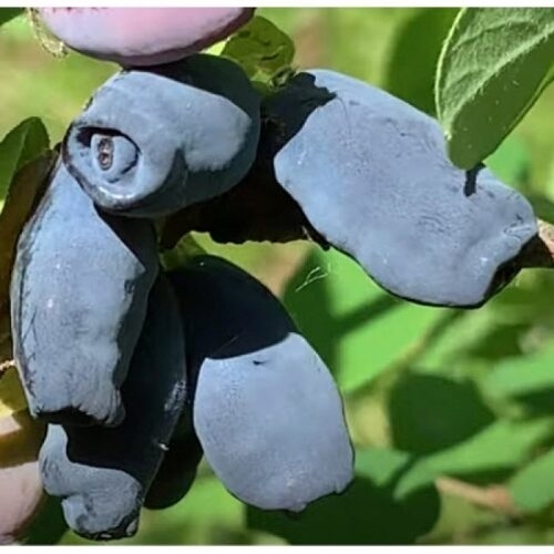 Для жимолости Хоней Би характерны среднерослые прямостоячие быстрорастущие побеги. В высоту куст достигает около 1,8 м, Для ягод культуры типичны крупный размер и яйцевидная форма. Глазок маленький, конец чашечки округлый по форме. Вес одной ягоды может достигать 3 г. Поверхность плодов покрыта шероховатой кожицей с сизоватым налетом. Окрас ягод описывается как темно-синий или фиолетовый. Плодам жимолости Хоней Би присущ кисло-сладкий вкус. Его можно описать как пряно-сладкий, с неявно выраженным горьковатым оттенком. Сладкие медовые нотки ягод гармонично сочетаются с легкой кислинкой. Хоней Би относится к поздно созревающим сортам. Плоды жимолости достигают спелости только в конце июня или в первых числах июля.